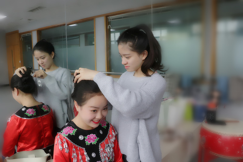 传媒、舞蹈老师给学生一一试妆、服装搭配,用最完美的状态去迎接艺考